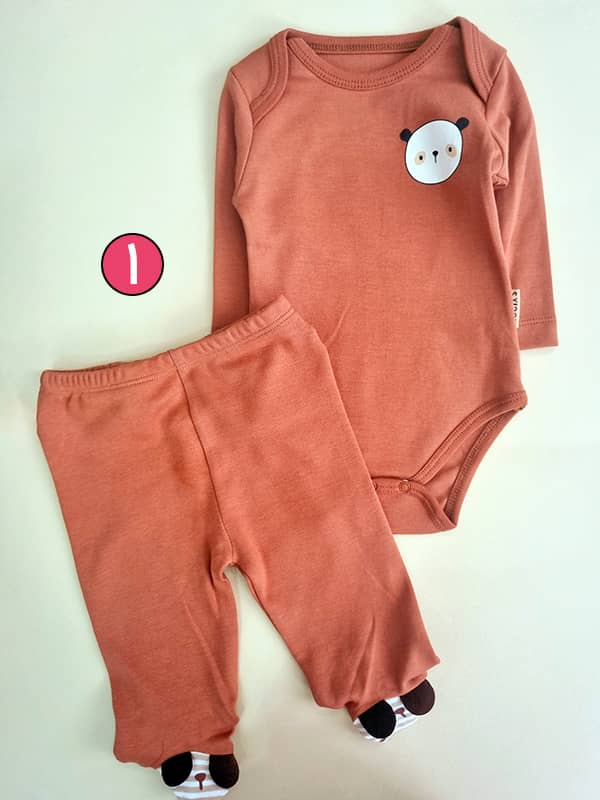 0 تا 3 ماه 👈🏼 ست دو تیکه بادی شلوار 👈🏼 قد بادی 38 پهنا 23 آستین از کنار گردن 26 – قد شلوار بدون جوراب 34 فاق 17