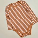 راه راهی خردلی 👈 18 تا 24 ماه 👈 قد 47 پهنا 27 آستین از کنار گردن 35