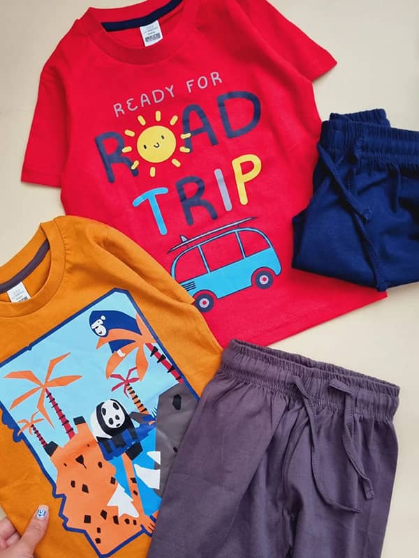 1 تا 2 سال👈قد تیشرت 40 پهنا 29 قد شلوارک 28 فاق شلوارک 22